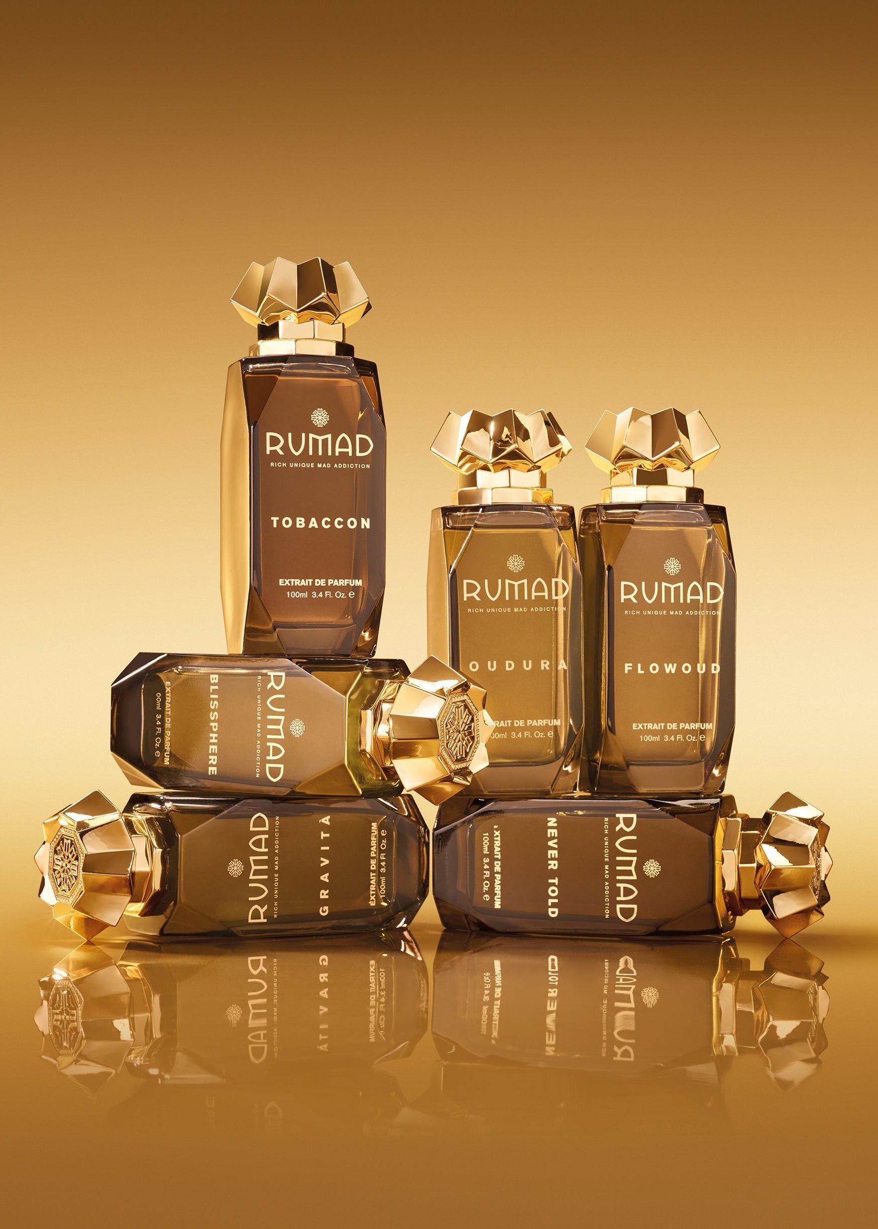RICCO PER L’OPULENZA DELLE SUE MATERIE PRIME, UNICO PER IL SUO ESTETISMO, FOLLE PER LA SUA CREATIVITÀ E IRRESISTIBILE GRAZIE ALLE SUE ESSENZE PROVOCATORIE. RUMAD OFFRE UNA NUOVA DIMENSIONE DELLA PROFUMERIA ARTISTICA, LUSSUOSA E COMPLETAMENTE AFFERMATA.